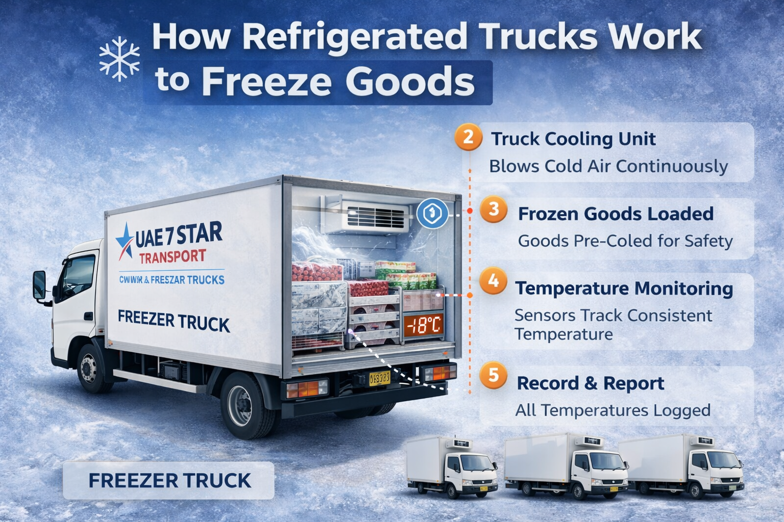 By choosing UAE7Star Transport’s chiller truck rental service, you eliminate these burdens while gaining professional logistics support.