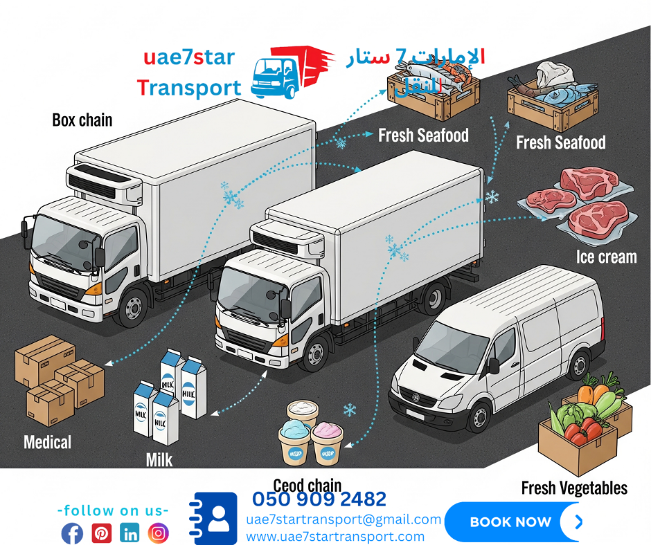 At UAE7Star Transport (www.uae7startransport.com), we specialize in professional chiller truck rental in Abu Dhabi, Dubai, and across the UAE, offering safe, efficient, and fully temperature-controlled transportation solutions for businesses of all sizes.